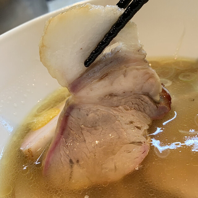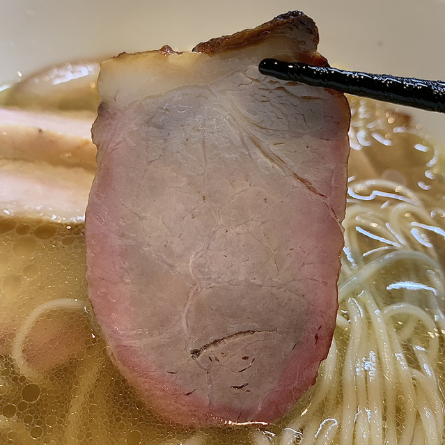 白醤油らぁ麺のスープに焼豚の燻製の香りが染み出して相性がかなり良いです◎