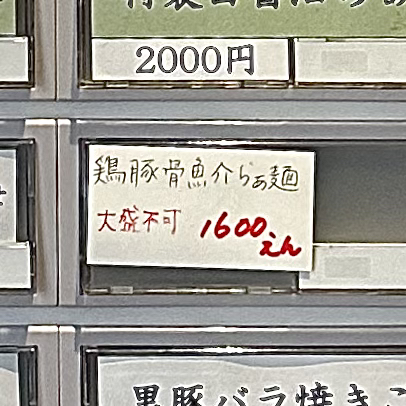 ・鶏豚骨魚介らぁ麺 1600円 ※数量限定45杯