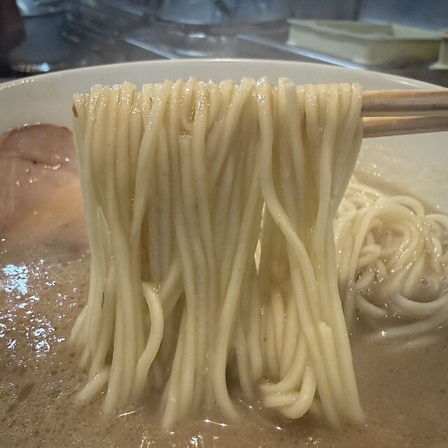 麺は長く、啜りにいった時のスープの持ち上げ具合、麺もスープの一体感たまらないです