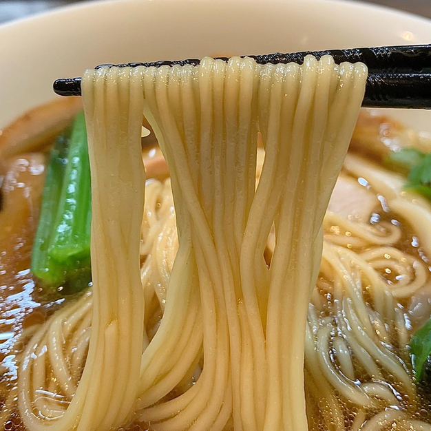 小麦の風味が豊かな、しなやかで啜り心地の良い丸刃細ストレート麺になります。