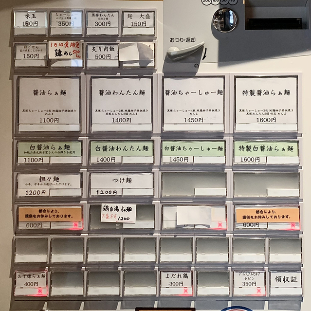 ・煮干らぁ麺 900円 ・特製トッピング 250円 ・わんたん大粒3個 200円