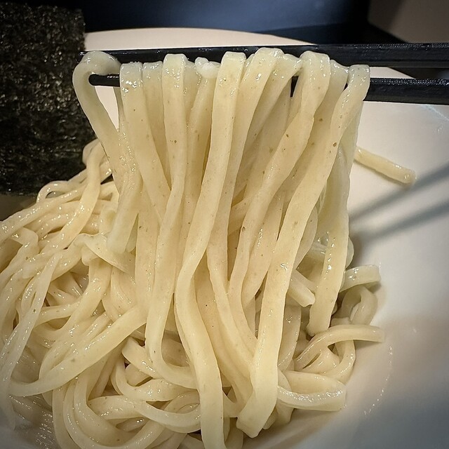 まずはつけだれを頂くと、口に含んだ瞬間に、口内に広がる濃厚な地鶏と伊吹いりこの味わい深いスープに感動✨