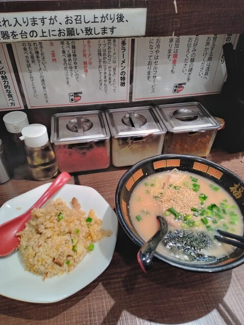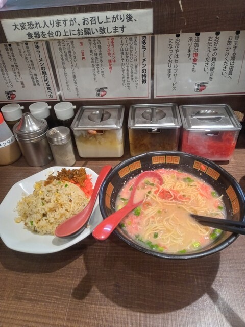 いつもの博多ラーメン半チャーハンセットを食券機で購入