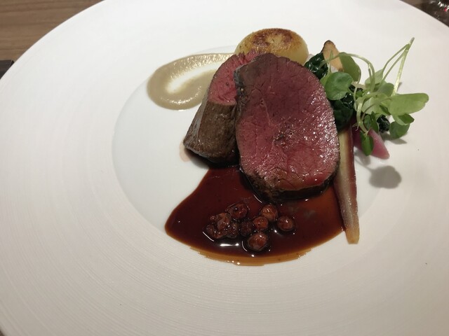 一皿目は、鹿の血のマカロン。なんと毛皮の上に乗ってます。手触りバツグン。更にお店自慢のジビエのタルト、鹿のローストなどしっかりめのジビエが続きます。どれも食べやすく上品なお味。大満足なコースでした。