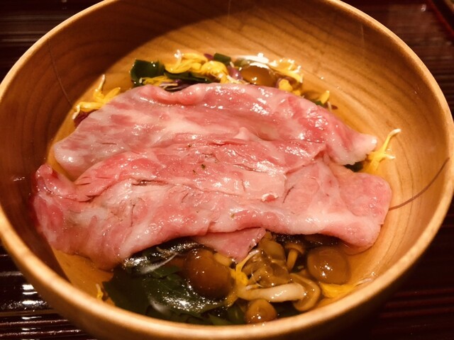 カバー写真から順に、一品目の海苔巻きは完全にネギトロ、二品目はハチノスのボイル、四品目はカツオのタタキと勘違いする程、脂の癖が全く無く、和牛の到達点を感じさせてくれました。