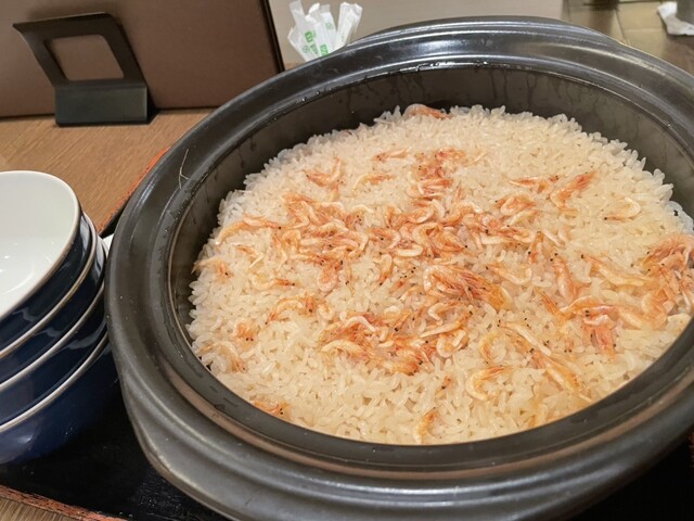 桜海老の炊込み御飯、とてもいい香り♡、お腹おっぱいが、これは食べれます。
