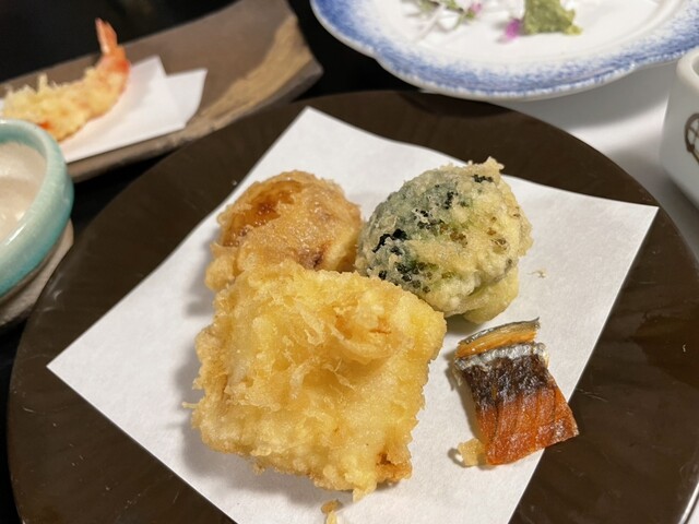 天ぷら3(撮り悪れ):稚山女(超絶絶品)、○○、△△、✕✕(何が出てたか覚えてないが、美味しい物でした。)。