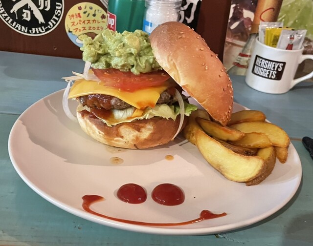 アボカドチーズバーガーとジンジャエール