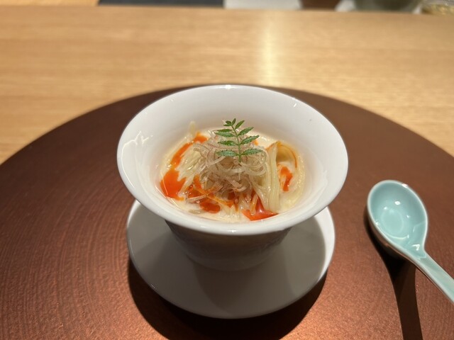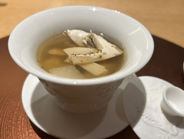 ●冬瓜 衣笠茸 蝦夷鮑の鶏蛋湯