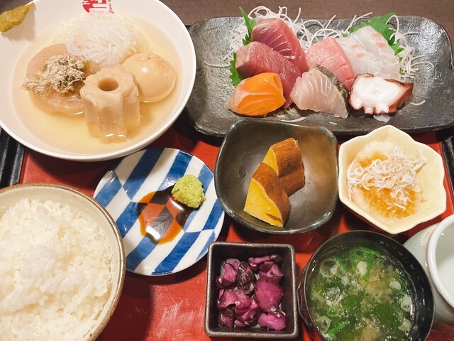 おでんもお刺身も、それぞれ一人前くらいのボリューム。これ両方食べるんだからもはや2人前。
