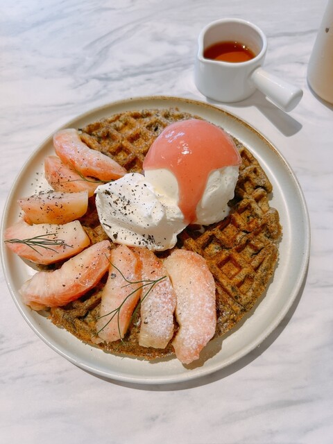 桃のシーズナルワッフルがモーニングの季節限定しかも数量限定とのことで、頑張ってw朝活してきました!