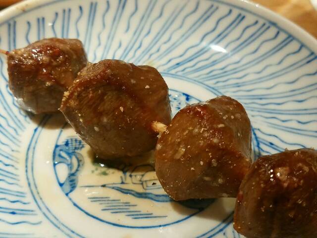 驚いたのは、レバーとハラミ。雄と雌の品をそれぞれ提供されました。こちら、オスとメスに分けるだけ合って味わいも違います。とくにハラミはオスのほうが少し歯ごたえがある感じです。