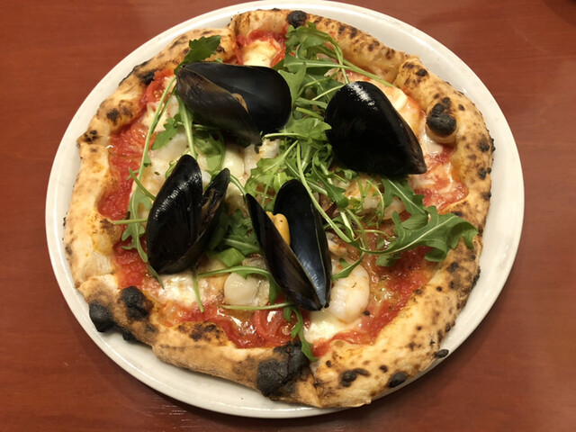 念願のペスカトーレ。ムール貝、貝柱、エビ、タコ等具沢山でした。相変わらずピザはモチモチで美味しかったです。