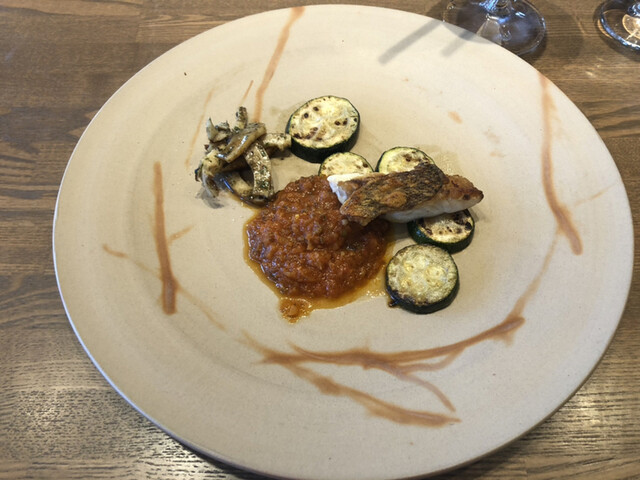 舞茸と玉葱を使ったポルチーニソースが絶品です。香草焼きの鯛は隣にあるカボチャも甘くて美味しいです。