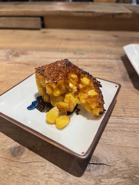 アラカルトで必ず食べたかったのが、「キャラメルコーン」とうもろこしを四角く固めて焼いたもので、上の部分はキャラメリゼされていました。コーンの部分はシンプルな素材の味、上の部分は甘い×ほろ苦くて、とうもろこし好きには必ず注文してほしい一品でした。