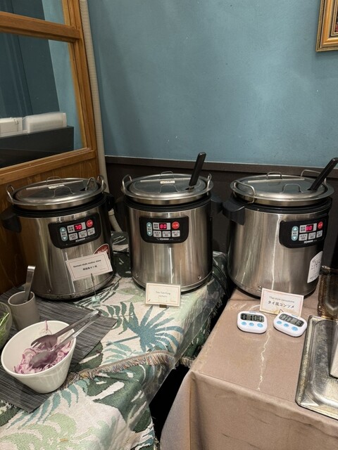 11:30から4回1時間ごとにできあがるパッタイが大人気で、出来上がりの声がかかると10人くらいの行列ができていました。それ以外は平日ということもあり、スムーズにビュッフェを楽しめました。