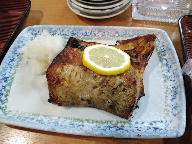 最初のオーダーは刺盛りと銀だら焼き(半身)から。刺盛りが来た時点で冷酒に変えました。1発目の冷酒は山間。これは自分でケースへ見に行って決めました(^^) 銀だら着皿、涙が出てきそうなくらい嬉しいです。粗く卸した大根おろしにレモンを絞りそこに醤油を垂らします。銀だらにはかけません。身を取って大根おろしを乗せて……、美味い(T_T) 物凄く美味い(T_T)(T_T) おそらくこれ以上の銀だらはないのではないでしょうか。佐渡の肝入りイカ干しも追加していただきました。これがまた美味いのでなんのって(^_^;) ずっと口の中で噛んでます。味が濃いのでちょい噛りで食べます。もうここまで来たときには冷酒も4杯目?5杯目?かなり進みます。うるいのおひたしとつけものも頼み口の中をさっぱりさせて終了です。