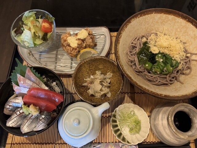 13時頃で、4つのメニューの内、まだ3つ選べました。「海鮮丼と蕎麦とからあげ」を選択