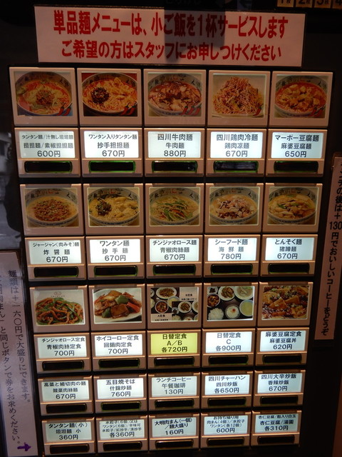 ランチタイムは3種の『日替わり定食(A,B¥830、C¥950)』が用意されており人気ですが、ワタクシは『麻婆&半チャーハンセット¥830』、セイネンは『ベスト2セット¥830』のチケットを購入しました。