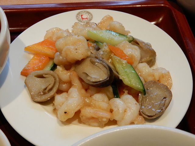 タケノコ、シイタケ、キクラゲの歯ごたえのある食感が変化をつけ、太ネギの甘みも良。