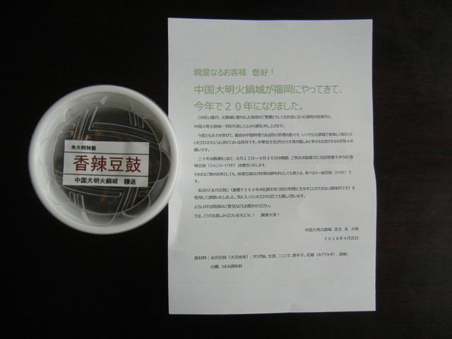 現在ではこちら本店の他、西区橋本「木の葉モール」に支店があり、名物の「担々麺」に特化した店舗「大明担担麺」を福岡県内に3店(田村店、TNCパベリア店、箱崎楽市街道店)を出されるほどの人気。