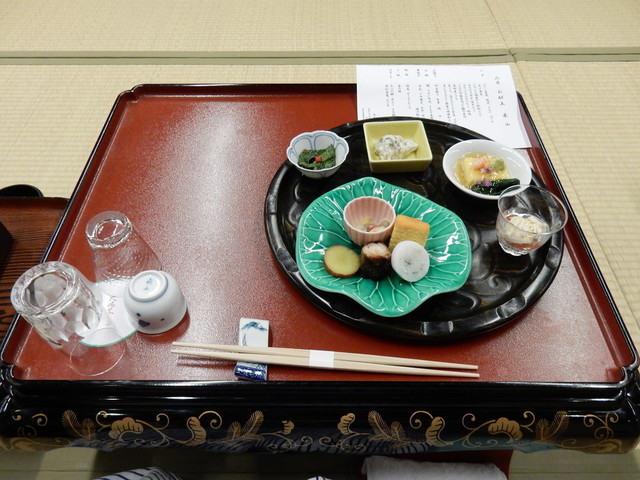 夕食は別棟の宴会場「飛梅」でいただきました。