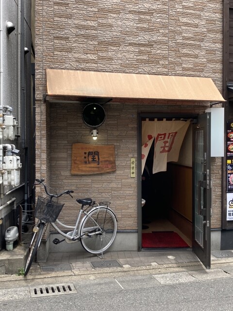 赤文字で「潤」と書かれた白暖簾をくぐって入店すると、左手の厨房に沿う一文字のカウンター9席のみの店内は満席の様子。