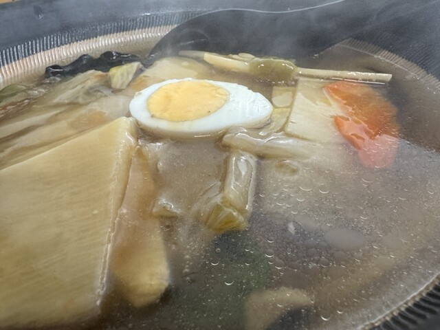 めん類とご飯物を頼むとどうしてもめん類を先に食べる事になると思うのだが、カツ丼が冷めるのも好まない。伸びたラーメンを食べるよりマシかと思うので今回もミニラーメンを先に食する。少し味は薄めだが喜多方流の麺で美味しい。ミニサイズとして十分な量もある。
