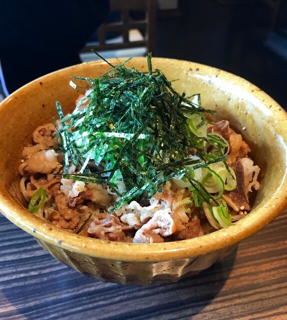 旦那さんがよく頼む肉そばをはじめて注文してみました。お肉が豪快に乗っています。お蕎麦はラー油やらお肉やらといただいてちょうどいい感じの軽くて喉ごしのよいもの。温蕎麦用のもの?肉そば専用のもの?私は舌が残念なので詳しくは分かりませんが。「がっつりたべたいひとにおすすめ」の文句通り、ボリュームがあります。