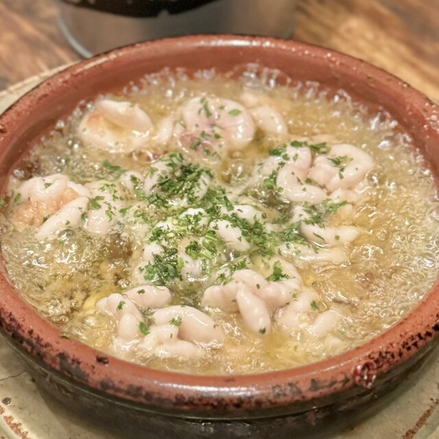 ⇰ ガリシア風タコの鉄板焼、麦芽と鳩麦のデュカ