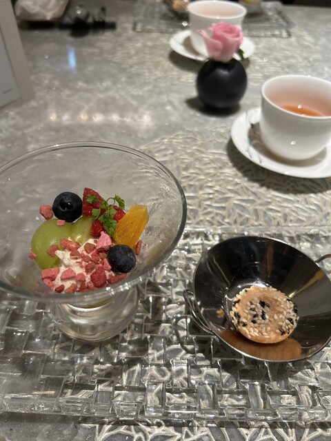 前菜 チャーシューは味が染みてましたが少し固かったです。スープは熱すぎました。北京ダックは包んでいる皮がもちもちでおいしかったです。エビチリは美味しかったですが、少し辛かったです。カニ詰はプリプリで美味しかったです。プリンは美味しかったです。全体的に大満足です。