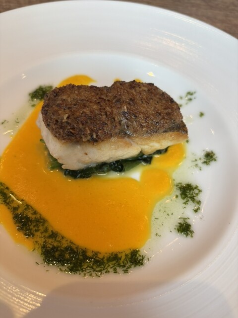 大きな目鯛のローストが出てきました。中はふんわりしていて柔らかく、魚の上にソースがのっているのですが、それがまた美味しいです。絶対、おすすめです。