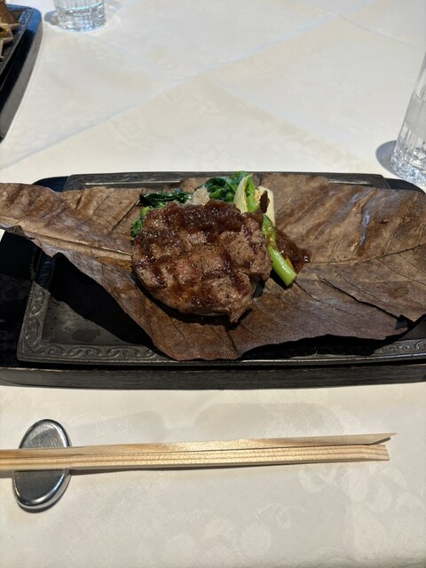 肉は熱々の状態で、ほう葉の上に乗せられて出てきます。