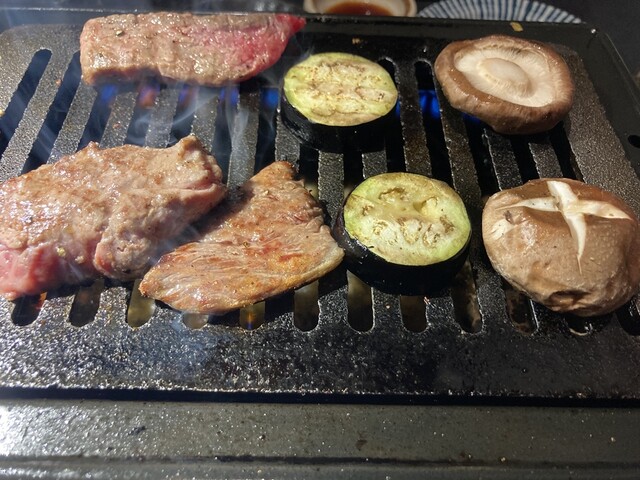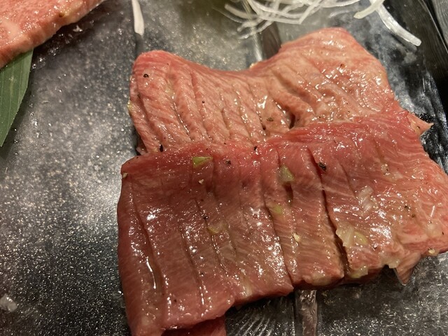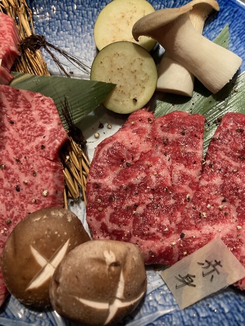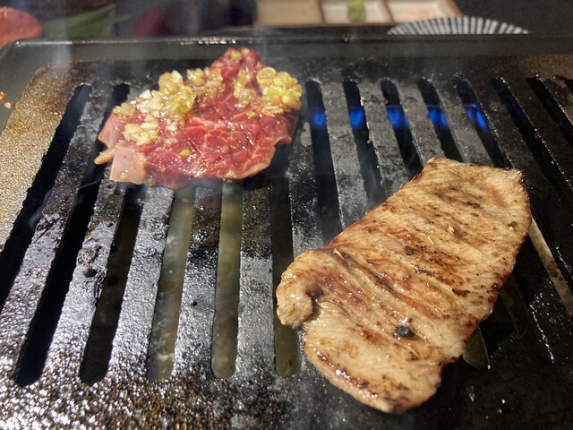 牛たん盛り合わせ、ハラミ、肉寿司、ホルモン、福島牛ステーキ、締めは冷麺。