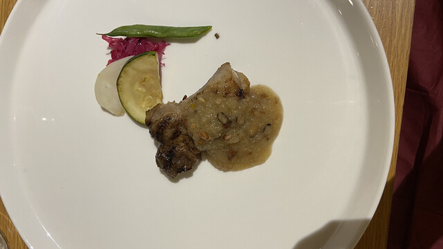 金華豚のグリル しょうゆの実と大根おろしのソース