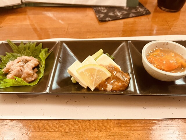 珍味盛り(スルメ麹漬け.酒盗.このわた)