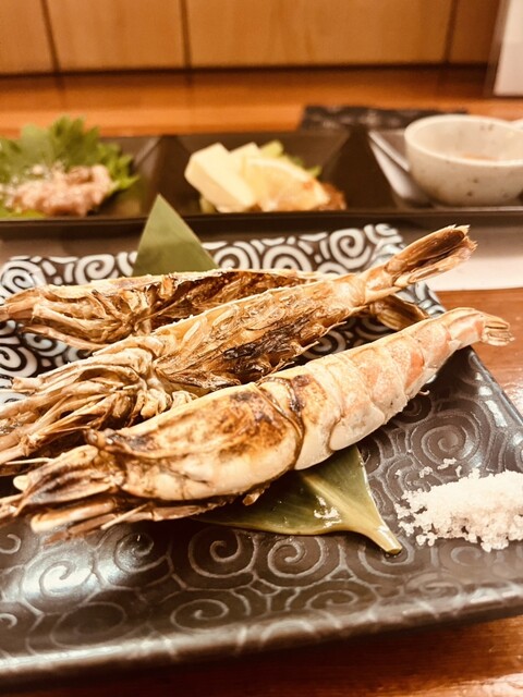 お店は駅前バスロータリーそば。予約時間から少し遅れ19時店着。中に入ると一階のカウンターは満席。カウンター内の調理場では大将とスタッフがキビキビ調理中。ホールのお姉さんも感じ良く動かれていて明るく活気あり。よし…間違いなく良店ひきました。