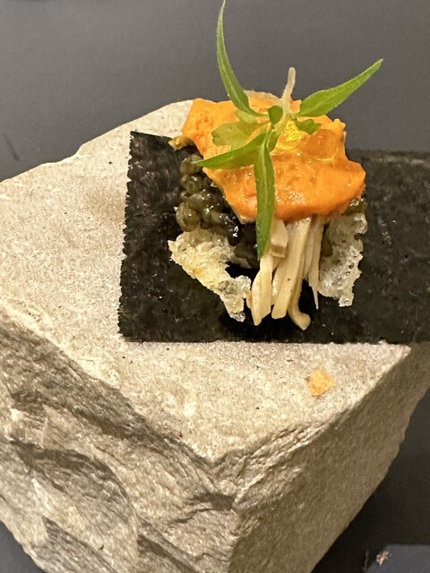 一番一番印象的なことはノンアルペアリング。22品の料理に対し、22品の料理にふさわしいノンアルペアリング、一品一品は全部杉岡シェフがアイデアから完成品まで独自で開発してる特別なものです。ノンアルの飲み物は、コースではそれほど重要ではありませんし、市販品で買うこともできますし、料理への愛がなければ、あえてそこまでの手間をかける必要はありません。本当に尊敬しています。