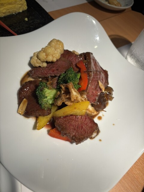 サラダにザーサイ、海老マヨ、酢豚、だし巻き、渡り蟹春雨、白老牛と野菜炒め、麻婆豆腐、チャーハン、寿司と食べ過ぎましたー!