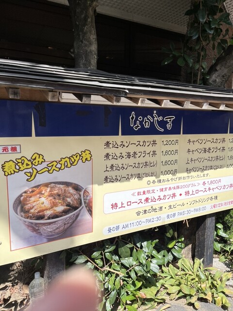 元祖煮込みソースカツ丼がなかじまさんの名物。どちらも1200えん。サンドウィッチマンさんが8月上旬に来て、最近放映され来店してみました。どちらも美味しいが、卵とじの元祖煮込みソースカツ丼がいいかな。カツも美味しい。