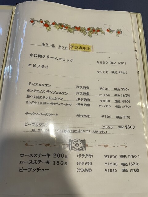 サンジェルマンは、豚ヘレ肉のカツをホワイトソースで包み、オーブンで焼き上げ、デミグラスソースを上からかけてあります。メニューにも書いてある通り、豚ヘレ肉は柔らかく、ホワイトソースとデミグラスソースとのバランスは絶妙でたまりません!
