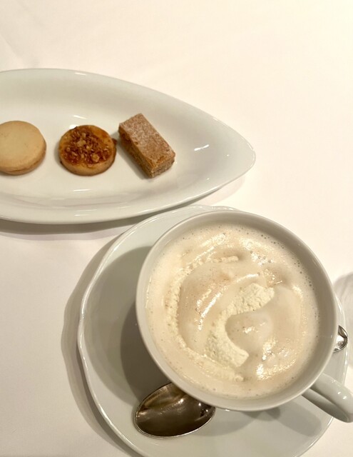 食後の飲み物はチェリーのリキュール入りのコーヒーを。クッキーも付いてきますが、これがまた味わい深い。