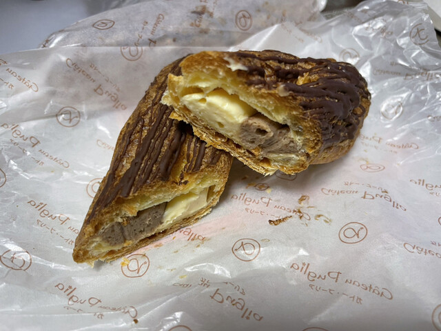 和栗のクリームとカスタードクリームが2層に入ったエクレアです