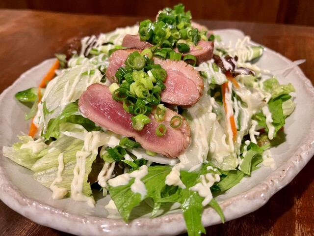 ランチロースかつ定食1つと鴨サラダを注文してシェア。