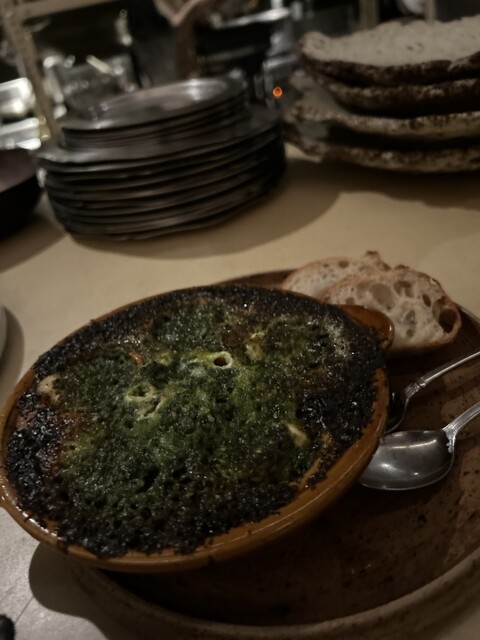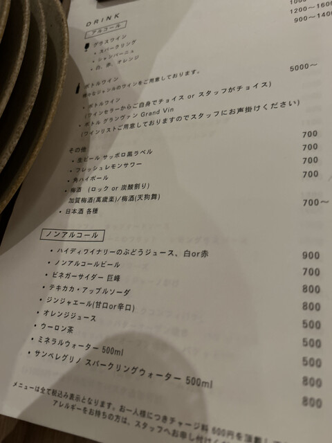 料理はパテドカンパーニュ、岩タコのブルスケッタ、ズッキーニのフリット、ゴマフグ白子のオーブン焼き、鮮魚の薪焼きオクラとトマト酢のラビコットソース。
