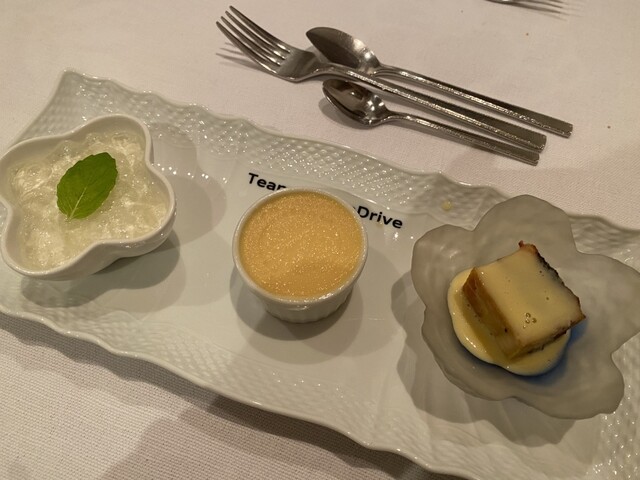 ウニの香り高くじんわり美味しいフラン、テリーヌの素材ひとつひとつが旨みたっぷり、クリーム煮もスープも素材の美味しさと柔らかなコクがあります。ハンバーグはこれまで食べたことのない不思議なホロホロ食感で、確かにトリュフの香りが❣️