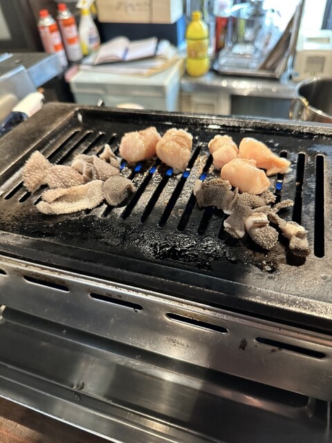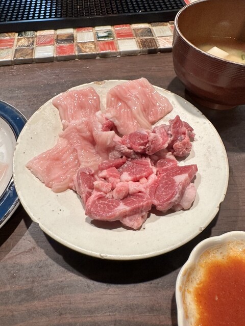 焼肉店のようにお肉にタレを絡ませておらず、そのままを焼いて濃いめの味噌ダレにつけて食べます。新鮮なので全く臭みがありません。