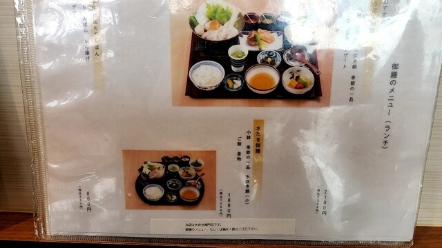 小鉢、季節の1品、水たき鍋(小)、ご飯、香物です。