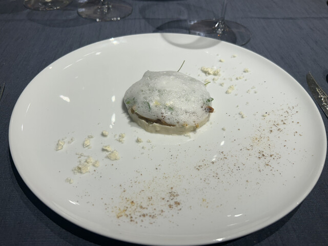 ついにお邪魔することができました!ランチタイムですが雰囲気、サービス、そしてもちろん食事とワイン、ディナークオリティと全く変わらないと感じました。アミューズ、前菜、メインのショートコースに泡、白、赤のワインのマリアージュ。食事に合わせたセレクションも最高ですが何よりお客様の体調や嗜好に合わせたセレクションやサーブのタイミングが最高でした。アミューズは淡路島玉ねぎのポタージュ、イタリアンオリーブにクラッシュブラックペパー。ほのかな甘み、玉ねぎの旨み、そしてオリーブのヒントが最高。前菜は紋甲イカ、パースニップにさまざまなハーブを添えてココナッツのエスプーマ。食感、ハーブの様々な香りのハーモニー、程よく火が通った紋甲イカの風味と食感、五感で味わう一品。メインは鴨。塊を藁でロースト、ほのかな燻製香に藁の香ばしさがプラス。柔らかくしっとり、そして皮目はカリっとした食感と香ばしさ。付け合わせの野菜の火加減も抜群。個人的にはロマネスコ、この火入れが素晴らしい。デザートはキャラメルアイスクリーム。そしてプチフィール的なアソートが一つ一つ丁寧に仕上げられてました。ワインも大満足、クレマンから始まりボルドー右岸の白と赤、本当にごちそうさまでした。またきます。