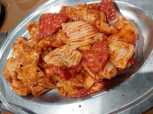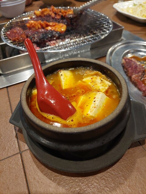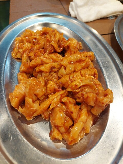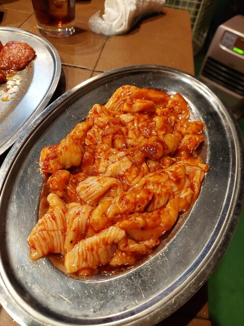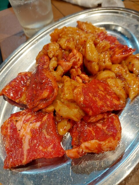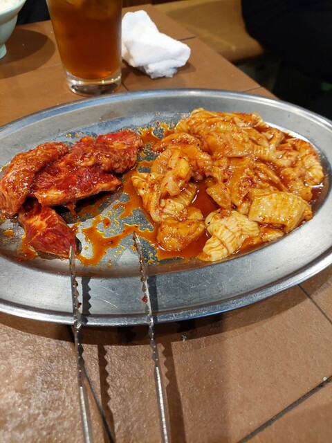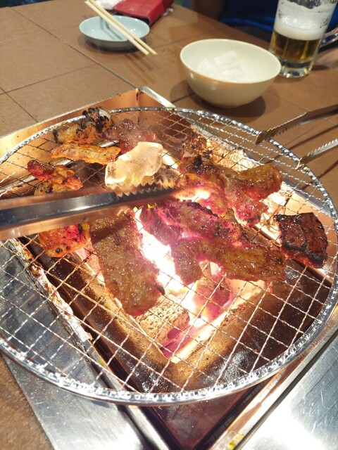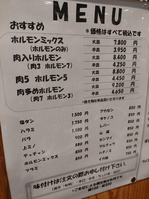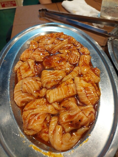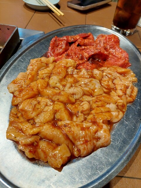 全部で、ハラミ6人前、テッチャン5人前、上ミノ4人前、スジ豆腐、2品盛、大ライス3つ、瓶ビール1本、チューハイ2杯、ソフトドリンク4杯をオーダー。